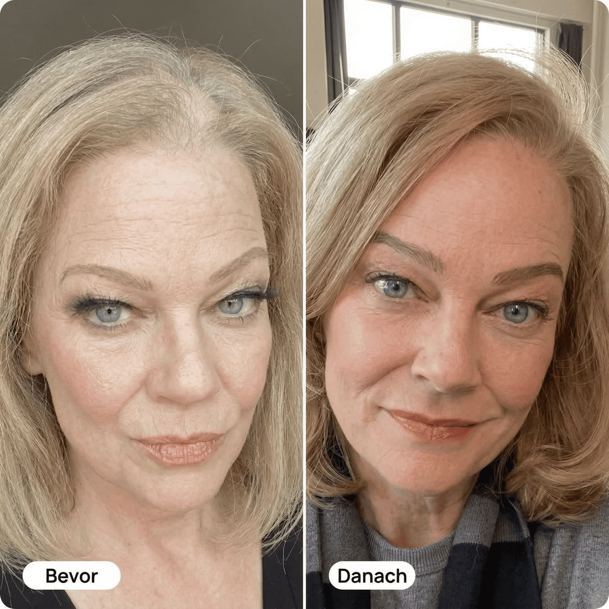 Viele Frauen bemerken weniger Haarausfall bereits nach 2–4 Wochen konsequenter Anwendung. Neue Babyhaare zeigen sich typischerweise ab Monat 2–3, sichtbar dichteres Haar in lichten Stellen ab Monat 4+. Haarwachstum braucht Zeit — individuelle Ergebnisse können variieren.